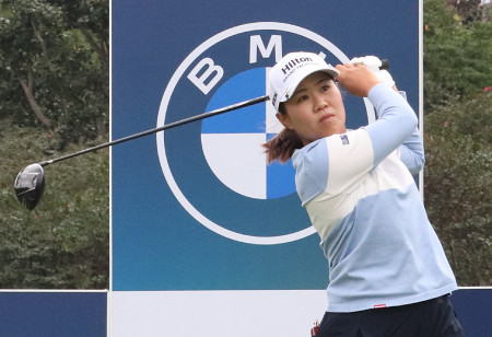米女子ゴルフのBMW女子選手権・第3ラウンド。5位から出た畑岡奈紗は4バーディー、1ボギーの69で回って通算15アンダーとし、首位と4打差の2位につけた=18日、韓国・全羅南道 【時事通信社】