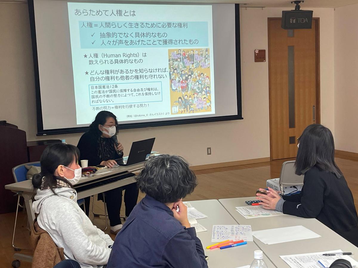 雲南市木次総合センター(雲南市木次町新市)で1月9日・10日、大人のための子どもの声を聞く連続講座の第1回「参加型アクティビティーを通して学ぶ人権、子どもの権利を尊重するために」が開かれた。