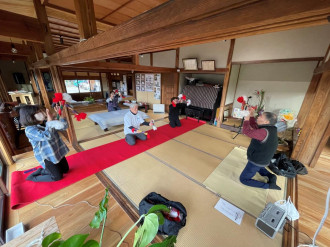 雲南の「みんなのお家(うち)」(雲南市木次町里方)で1月9日、銭太鼓の体験会が開かれた。