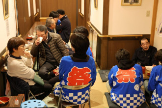 雲南の松笠交流センター(雲南市掛合町松笠)で2月17日、同地域でフィールドワークを行う大学生と一緒に「みんなで居酒屋」が開かれた。