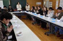 雲南の松笠交流センター(雲南市掛合町松笠)で2月17日、同地域でフィールドワークを行う大学生と一緒に「みんなで居酒屋」が開かれた。
