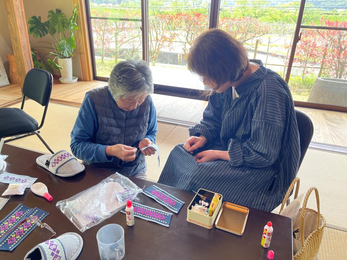 雲南の「みんなのお家」(雲南市木次町里方)で4月24日、「こぎん刺し」教室が開かれた。