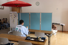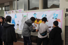 2階では、写真クラブや、ちぎり絵クラブ、編み物クラブなどが作品を展示。来島保育所や来島小学校の園児・児童の作品も展示した。玄関横では、飯南高校美術クラブがチョークアートを描き、牛串や唐揚げ、焼き芋やドーナツ・カレーライスなどの飲食ブースが出店。ロビーでは公民館運営協議委員がお茶席を設け、抹茶とお菓子を100個限定で無料で振る舞った。