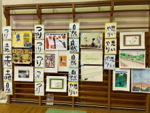 赤い幕を張った傘(天蓋)の下に子どもの健康や家族の幸せなど一つ一つに意味を持たせた細工物を飾る瓔珞(ようらく)のルーツと共に、地区内の観音堂にある瓔珞が古くなっていることから、地域の人たちで作っていることを紹介。これまで製作してきた瓔珞を展示した。