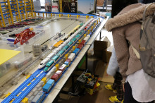 ロビーではおもちゃの列車展示、鉄道模型(Nゲージ)展示、鉄道グッズ販売、鉄道写真集販売、缶バッジ制作、子ども制服体験に加えて、出雲坂根スイッチバックを再現したジオラマの運転会も行い、多くの親子連れでにぎわった。2階ホールでは、しまね映画祭の一環として「銀河鉄道999」を上映した。