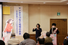 午後には、今年12月12日で木次線が全線開通88周年を迎えたことを記念して作られた木次線応援コミックス「さかねとつむぎとキスキ線」を語るシンポジウムが開かれ、100人以上が参加した。