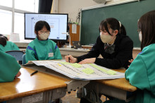 同校1年の福間咲衣さんは同学年の鐘撞美佑さんと験馬結衣さんのサポートを受けながら、加茂小学校の4年1組と2組の児童計30人を相手に読書体験の授業を行った。最初に「本を読んで楽しく語り合おう」とあいさつし、読書と関係するクイズで場を和ませた。
