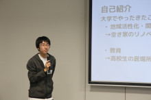 「未来への対話」は機会格差の是正に取り組み、大学生が活動できる地域の確保などに取り組む大学生の団体。代表の丸太大翔さんは昨年、雲南市が運営する雲南コミュニティーキャンパス・ゼミに参加し、市内の課題を発見し解決するための提案を作成した。「大学のない雲南市で大学生と接する機会の少ない高校生との交流事業ができたら」と考えたという。その後、実現の資金を得るため同プログラムに応募し採択された。
