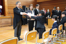 式典後に開かれた開校記念イベントでは、田中喜芳実行委員長のあいさつの後、在校生一人一人に三沢小学校での修了証書を手渡した。修了証書の名前は地域の人たちが一人一人手書きしたという。その後、児童、卒業生の中高校生が合唱を披露。大人の有志が1959(昭和34)年まで歌われていたという古い校歌を披露した。その後、三沢を盛り上げたい有志が集まった「みんなでざわざわ委員会」メンバーの落合孝行さんが在校生一人一人に思い出や閉校式の感想などをインタビュー。児童が答える度に会場から温かい拍手が送られた。