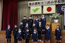 奥出雲町の小学校統合により、同校は3月31日で閉校となり、4月から子どもたちは同じく閉校となる布施小学校、亀嵩小学校、阿井小学校、三成小学校の児童と一緒に、新しく設立される仁多小学校で学ぶことになる。奥出雲町議会の石原武志議長は祝辞で、「地元に小学校がなくなることは寂しいと思うが、子どもたちには最適な教育環境で学ぶことができる。通学は大変かもしれないが、新しい小学校ではたくさんの友達が待っている」と励ました。