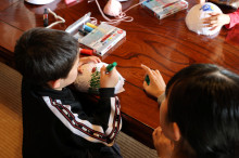 最後に、神楽に使う面を作る体験をして初日を終えた。2日目は3チームに分かれて体験プログラムを行い、3日目には地域の人たちを迎えた文化祭を行った。
