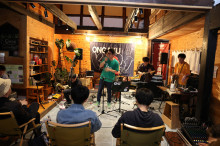 さまざまなイベントに活用されているが、第2・第4の金曜日の夜は「金吉屋大作戦」と名付けたバーを開いている。今回のイベントも、この一環。マスターのコイケさんは「多くは三沢の外から集まる若者たち。みんなで『こういうのやりたい、ああいうのやりたい』と言いながらやってきて、音楽とバー、食事を楽しむ場ができた」という。