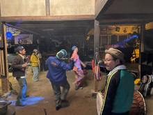当日は15時ごろから徐々に若者が会場に集まり始め、裏山をバギーで遊ぶ人の姿も見られた。日が暮れた18時30分ごろから徐々に来場者が増え、19時前には屋内の広い土間で踊り始める人たちの姿も。19時からは、SAWAGACHI(サワガシ)がアフリカのジャンベやドゥンドゥンの演奏を披露。音楽に合わせて体を動かす人たちが増えていった。