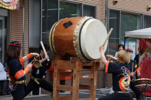 同施設2階のメインステージでは、屋内獅子舞保存会が獅子舞を披露。みとやスポーツクラブキッズダンスや、中野子ども神楽、雲南吹奏楽団、三刀屋太鼓などの演目が続き、多くの来訪者でにぎわった。来訪者席を囲むように、さまざまな飲食やハンドメード商品を売る店などが出店。駐車場にも多くの飲食店などが出店した。