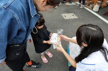 駐車場では、鍋山が地元で収穫した野菜、山菜、果物を、一宮は焼きサバ、バラずしを販売した。同施設の2階では、飯石が永井隆博士のふるさと展示を行い、関連グッズを販売したり、「平和を」塗り絵、平和への思いを込めたリボン作りを行ったりした。中野は手作りのコンニャク、赤飯、ゆでタケノコ、フキなどを販売。三刀屋は三刀屋高校JRC部のボランティアの協力で、三刀屋尾崎城御城印、ふるさとみとやクッキーを販売した。
