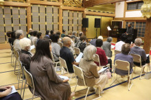 坊守の楠智恵子さんは「毎年中秋の名月の日にお月見会をやっている。昨年は落語を行った。今年は昭和歌謡が高齢者に人気があるということで、須山さんにお願いした」と話す。