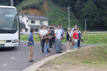 8日は午前中、雲南市の6つの地域に出かけ、それぞれの地域づくりの活動を学んだ。民谷地区では、人口減少していく地域で米作りを続けて行くために何が必要かを議論し、田んぼの管理で最も重要な草刈りを地区外からの支援者・共感者を受け入れて行う草刈り応援隊を継続して行ってきたこと、それによって地域住民の意識も変わって来たことを学び、今後も継続していくための課題を話し合った。