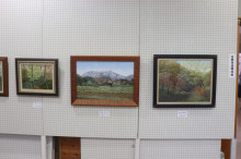 同センターの屋内では「大東町文化展」として、こども園の園児から大人までの作品を展示した。子どもは絵や書道、工作など、大人は写真、絵画、有名人の似顔絵などを出品。多様な作品に多くの人が足を止めて見ていた。大東町で繁殖するコウノトリの写真を展示するコーナーも設置。人権啓発のアイロンビーズ工作の体験ブースや、缶バッジの制作体験やオリジナルカレンダーを売る木次線利活用推進協議会のブースなども出店した。