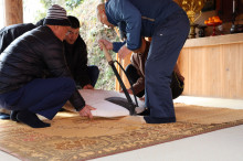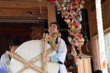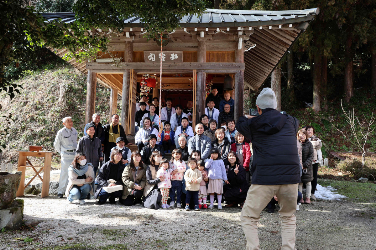 雲南の善福寺(雲南市吉田町上山)で2月15日、1840年から180年以上続く伝統行事「餅からげ」と「上山餅さし」が行われた。