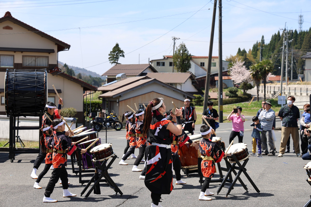 駐車場では子どもたちによる仁多飛燕太鼓が演奏を披露した