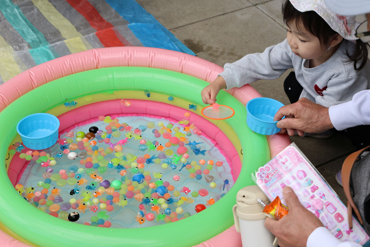 キッズコーナーのスーパーボールすくいに挑戦する子ども