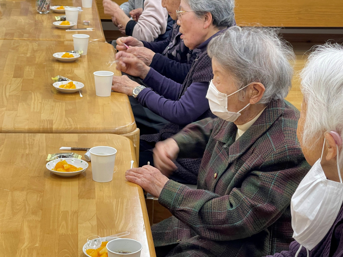 体操で身体を動かした後は、飲み物と菓子で交流した