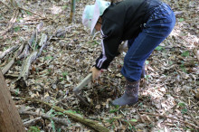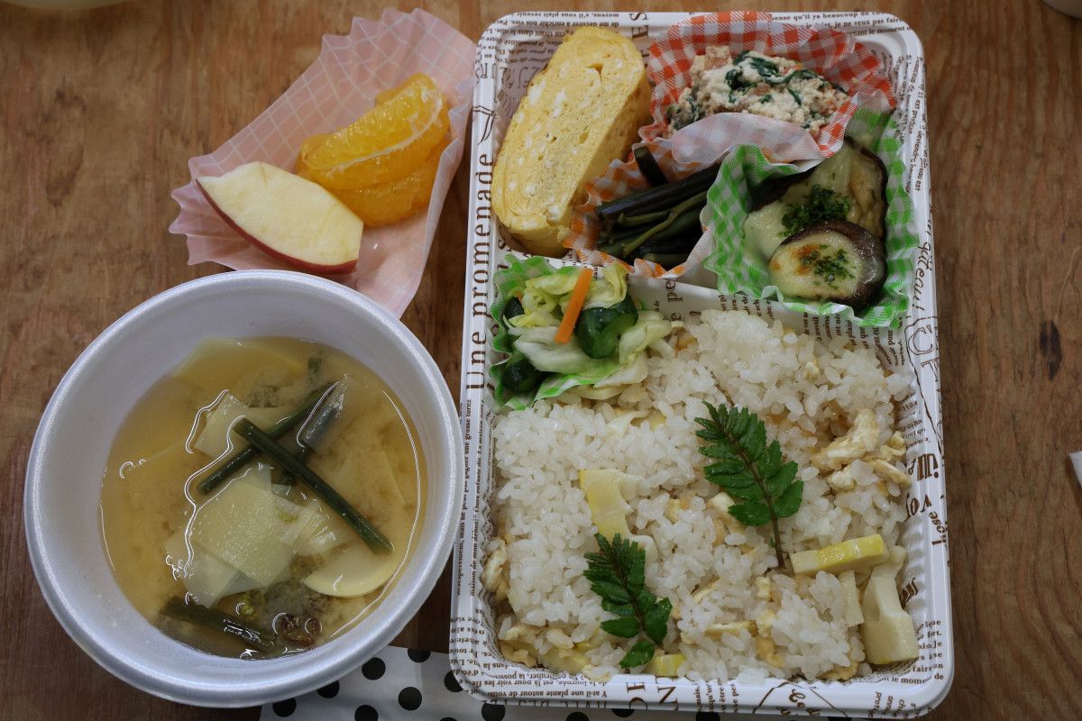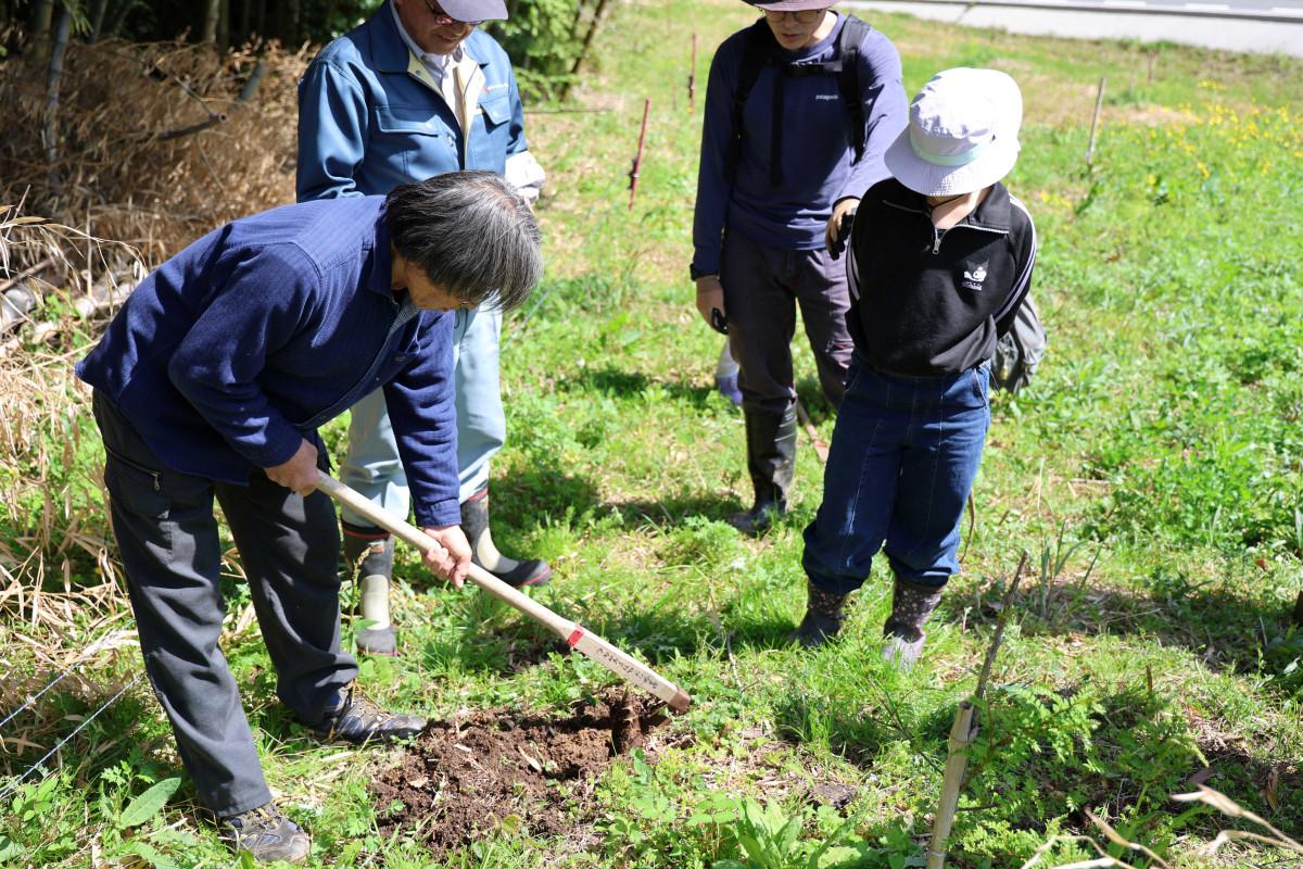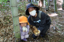 雲南の農事組合法人「さとぼう」の施設(雲南市三刀屋町里坊)の周辺で4月11日、タケノコを収穫して食べて楽しむイベントが開かれた。