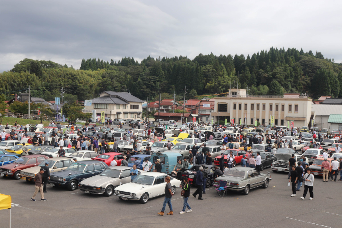 飯南町役場下駐車場で9月28日、「第4回昭和レトロカー in 飯南」が開かれ、県内のほか、広島、鳥取、山口、岡山、香川、徳島、高知、福井、兵庫、愛知、神奈川から懐かしい車が集まった。