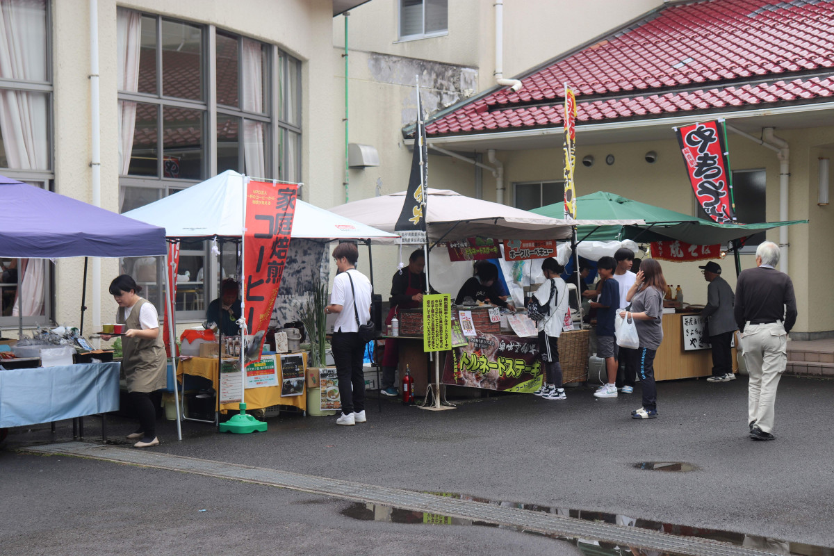 9月に旧海潮中学校跡に移転した海潮小学校(雲南市大東町南村)で10月5日、「第36回うしおまつり」が開かれ、地区内外から多くの人が集まった。