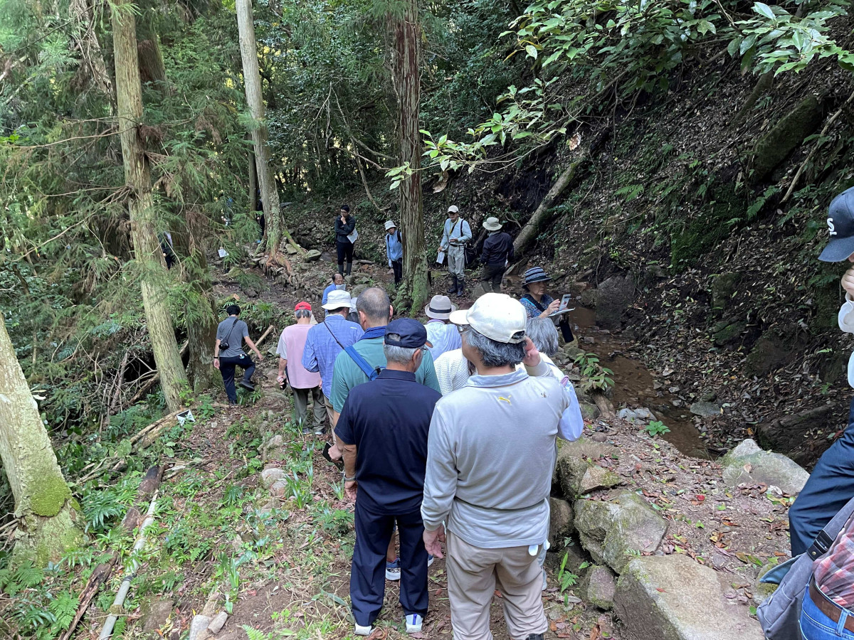 寸丸鉄穴砂鉄選鉱場の最上部まで登った参加者たち