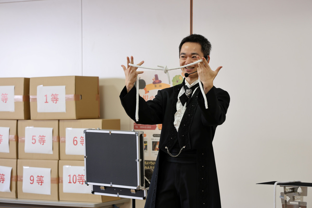 多根交流センターでは、広島在住の矢野さんがマジックショーを披露した