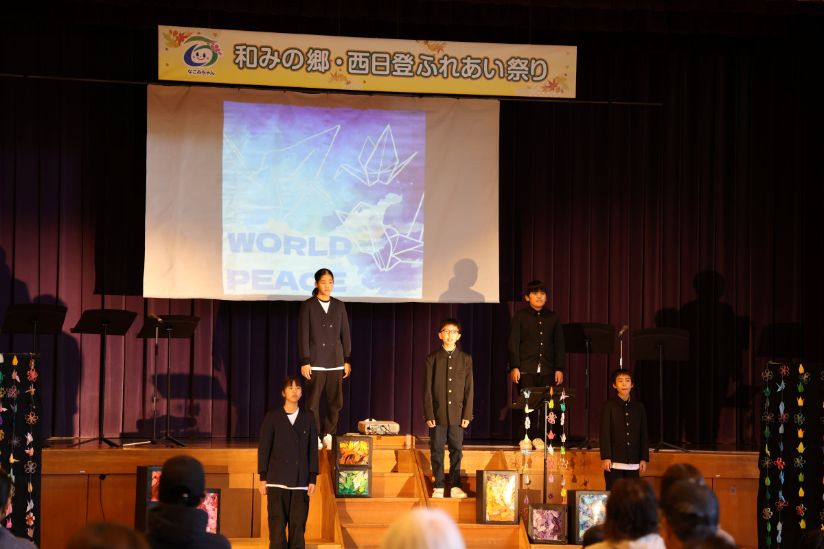 西日登小学校の6年生は各自の発表の後、5人全員でも平和についての皆の思いを発表した