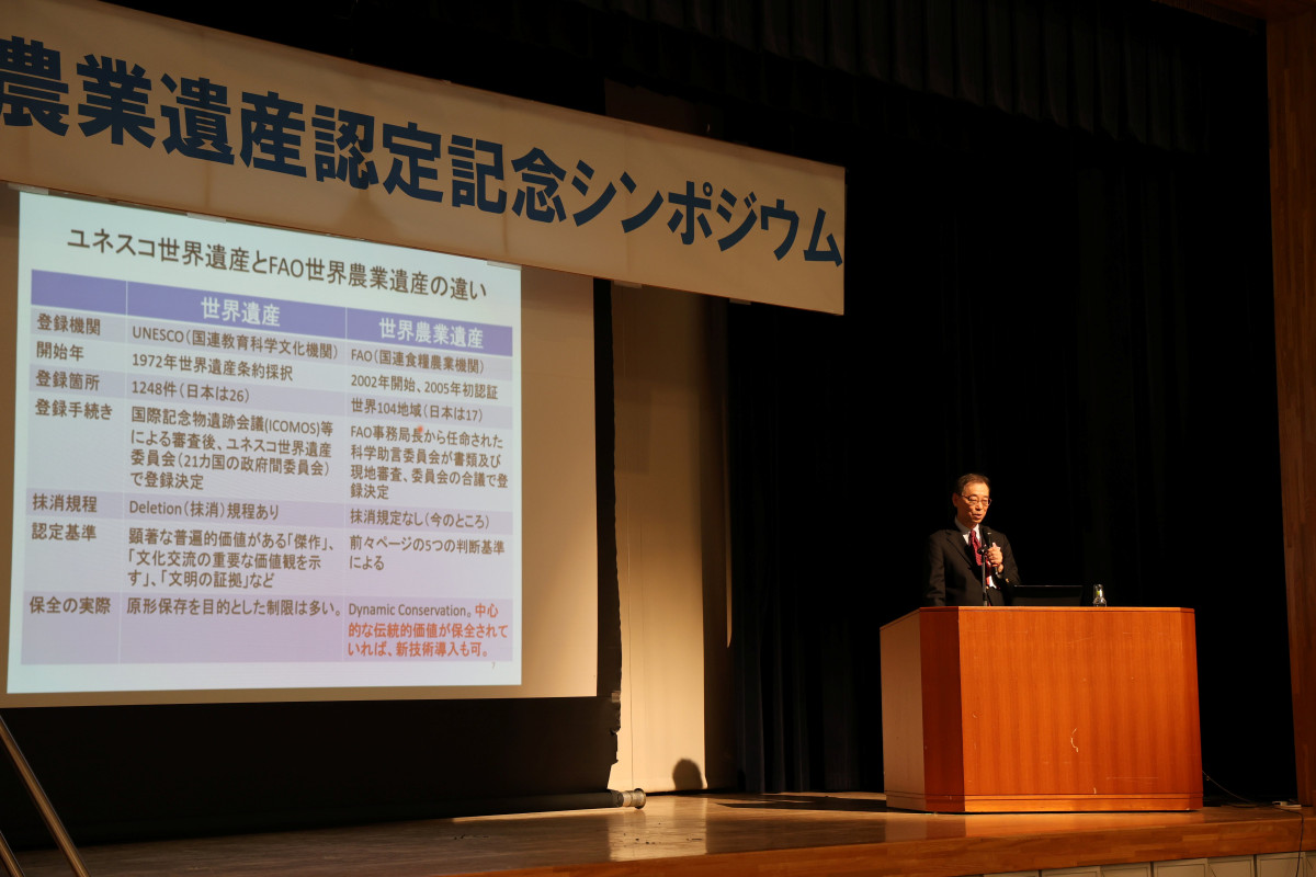 ユネスコの世界遺産とFAOの世界農業遺産の違いを説明する八木教授