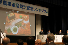 奥出雲町カルチャープラザ仁多(奥出雲町三成)で12月19日、「世界農業遺産の認定と今後の活用策を考える~「たたら製鉄を期限とした奥出雲町の農業」の可能性~」と題した、世界農業遺産認定記念シンポジウムが開かれた。