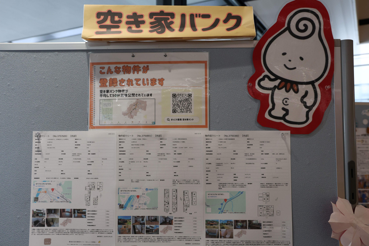 市役所1階ロビーには空き家バンクに登録されている空き家の情報も展示した