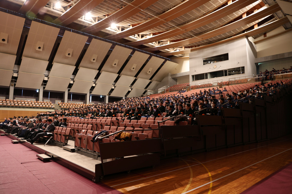 雲南市三刀屋文化体育館アスパル(雲南市三刀屋町古城)で1月10日、「令和8年 雲南市消防出初式」が開かれた。