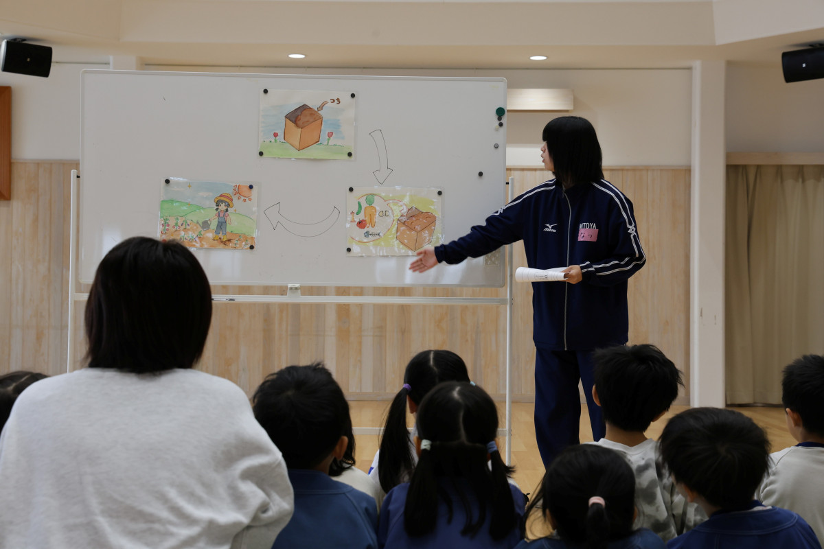 雲南市の「スペシャルチャレンジ・ジュニア プログラム」で活動する三刀屋高校生6人が1月21日、木次子ども園(雲南市木次町新市)と加茂小学校(加茂町加茂中)で出張授業を行った。