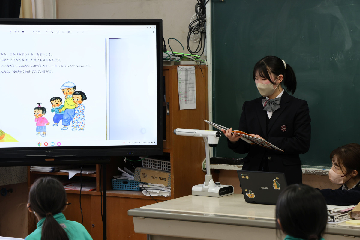 雲南市の「スペシャルチャレンジ・ジュニア プログラム」で活動する三刀屋高校生6人が1月21日、木次子ども園(雲南市木次町新市)と加茂小学校(加茂町加茂中)で出張授業を行った。
