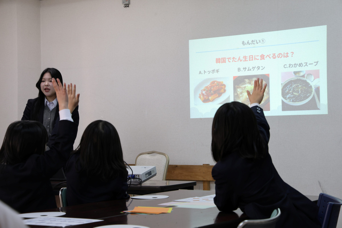 雲南市スペシャルチャレンジジュニアプロジェクトで海外留学を経験した高校生2人が2月4日・5日、それぞれ加茂児童クラブと木次中学校で出張授業を行い、留学先に体験したことや、そこから感じたことなどを児童や生徒たちに伝えた。