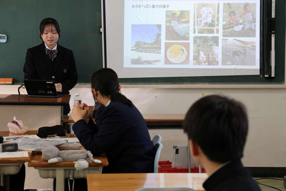 雲南市スペシャルチャレンジジュニアプロジェクトで海外留学を経験した高校生2人が2月4日・5日、それぞれ加茂児童クラブと木次中学校で出張授業を行い、留学先に体験したことや、そこから感じたことなどを児童や生徒たちに伝えた。