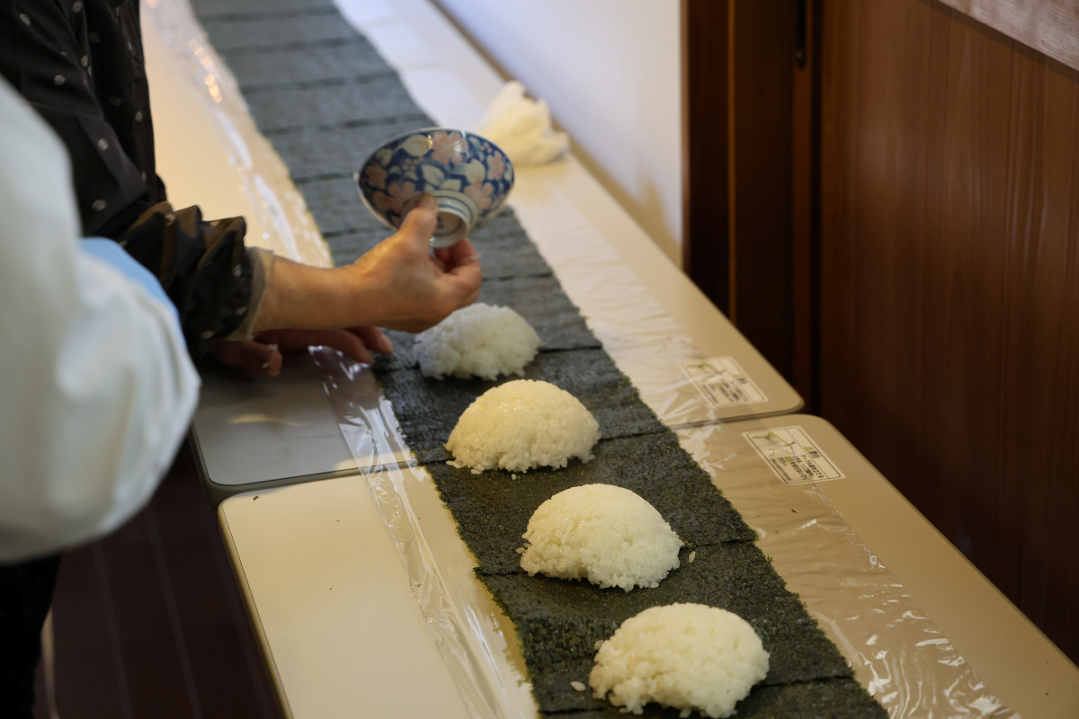 4升の米を炊いてのりの上に茶わん一杯ずつおいて広げた