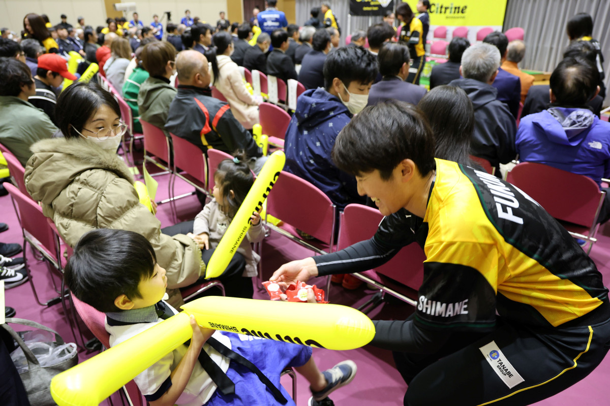 日本女子ソフトボールリーグに所属する「Citrine SHIMANE(シトリンシマネ)」のお披露目イベントが2月14日、雲南の三刀屋文化体育館アスパル(雲南市三刀屋町古城)で開かれ、地域住民やソフトボールファンら約200人がチームを歓迎した。