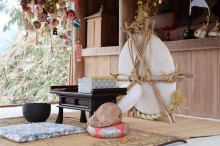 雲南の善福寺(雲南市吉田町上山)で2月15日、1840年から180年以上続く伝統行事「餅からげ」と「上山餅さし」が行われた。