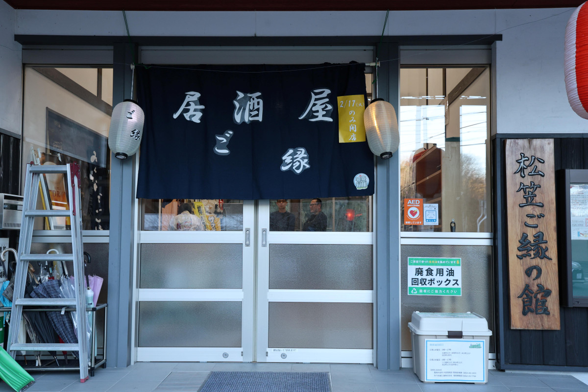 このイベントに合わせて作ったのれんを会場となった交流センター入り口にかけて開店