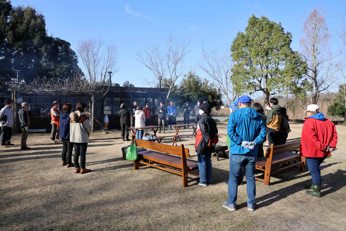 雲南のワイナリー「奥出雲葡萄(ぶどう)園」(雲南市木次町寺領)で2月23日、年に一度のまき割りが行なわれ、市内外から20人以上が参加した。