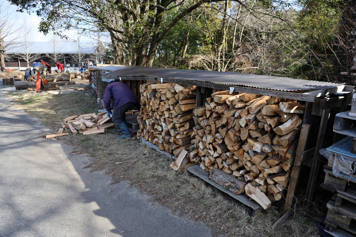 雲南のワイナリー「奥出雲葡萄(ぶどう)園」(雲南市木次町寺領)で2月23日、年に一度のまき割りが行なわれ、市内外から20人以上が参加した。