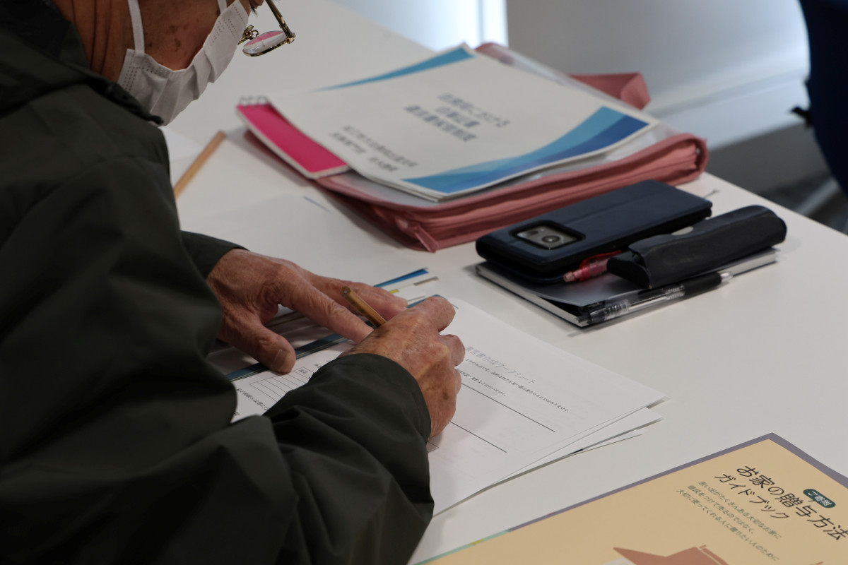 配布されたワークシートを埋めながら遺言書の内容を考える参加者