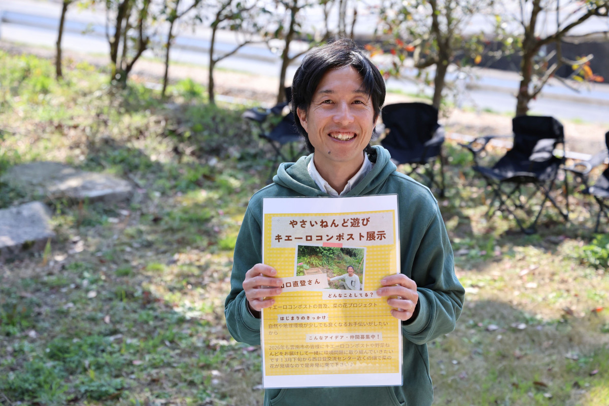 庭で「やさいねんど遊びとキエーロコンポスト展示」を行った山口直登さん