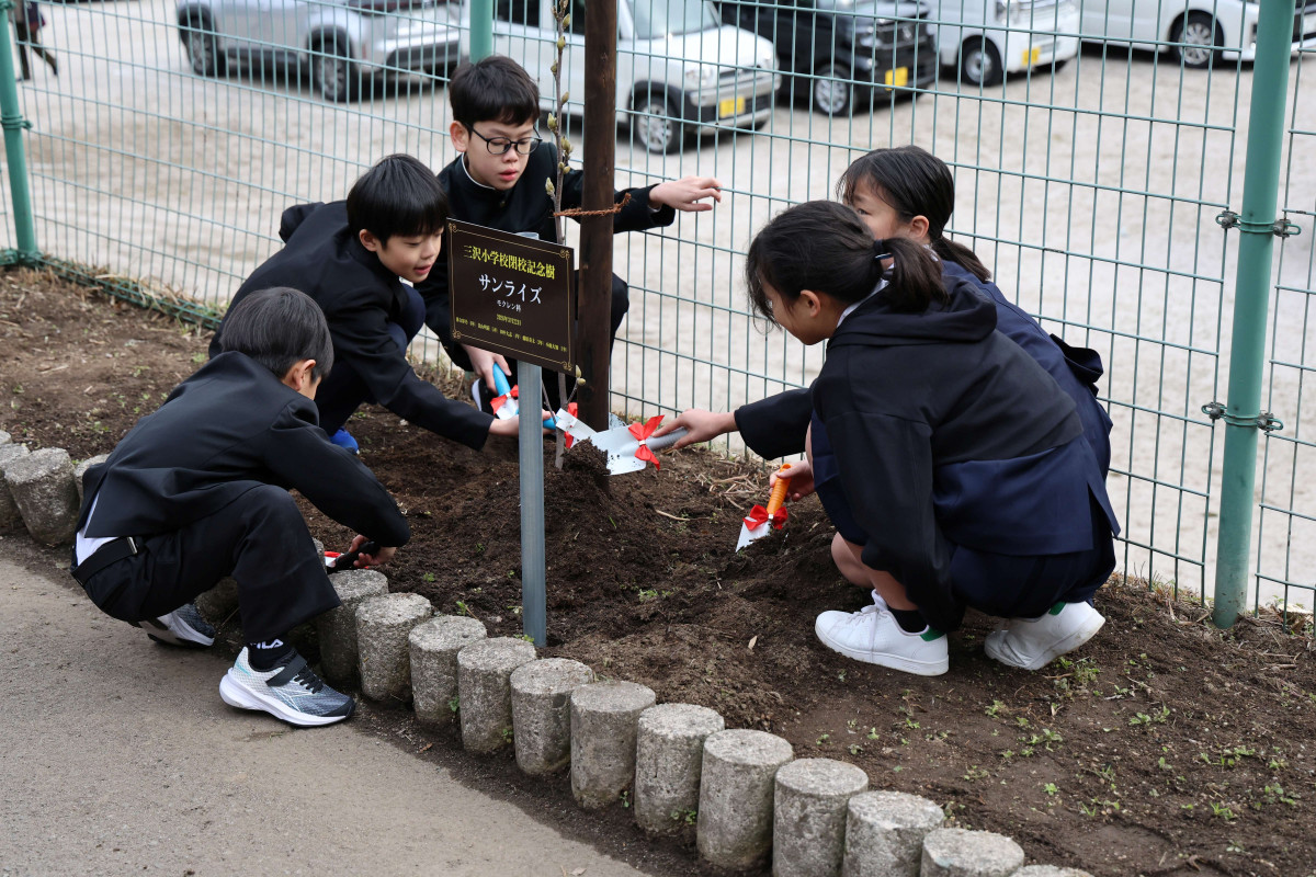 児童たちが閉校記念植樹を行った