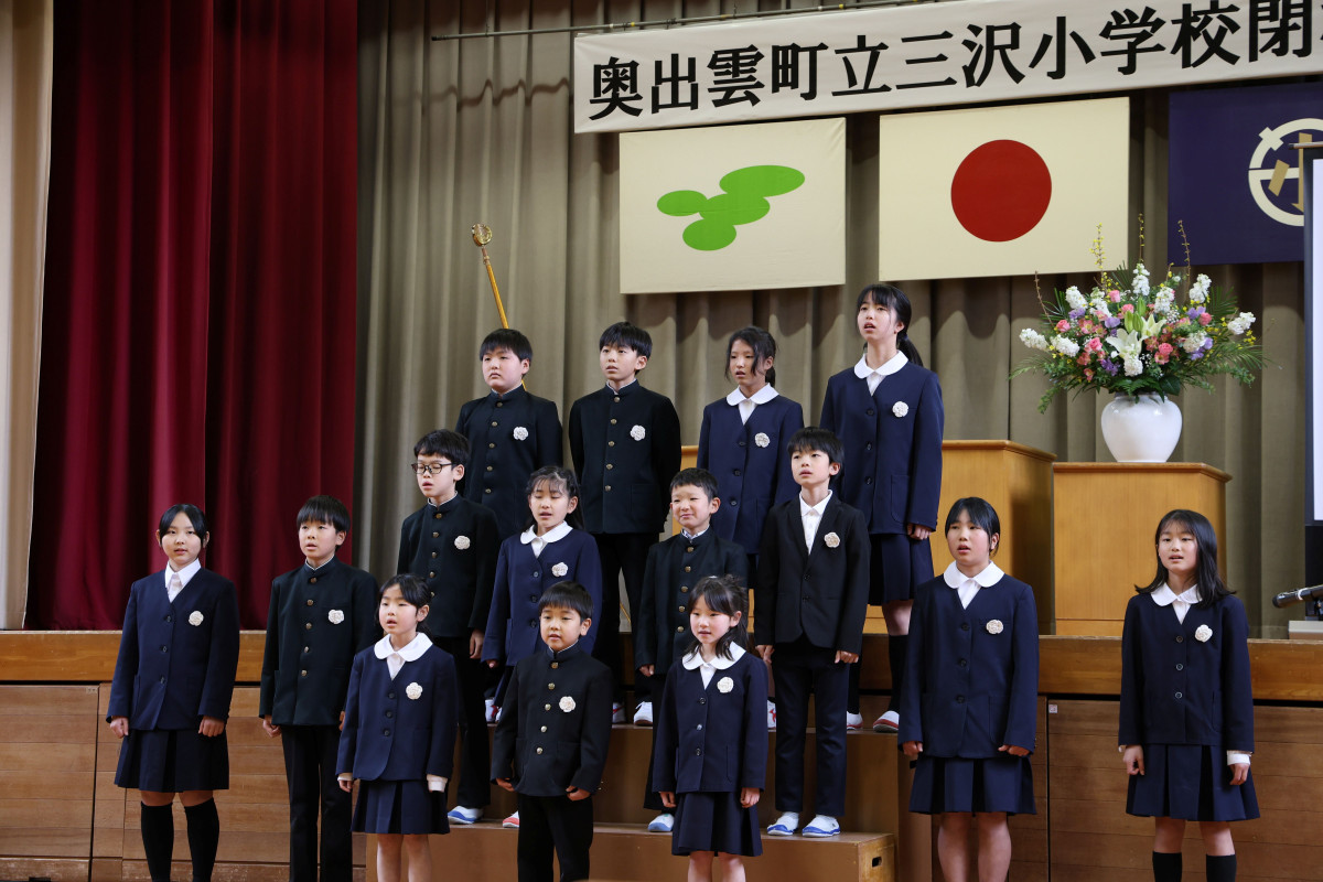 奥出雲町の三沢小学校(奥出雲町三沢)で3月22日に閉校式典と閉校記念イベントが開かれ、152年の地域と歩んだ同校の歴史に幕を下ろした。